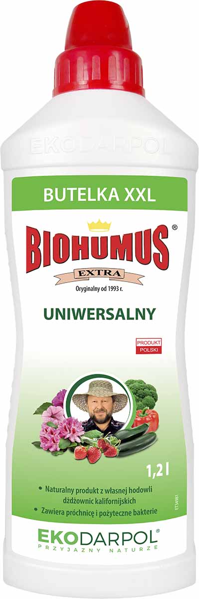 Biohumus Extra Uniwersalny to płynny nawóz naturalny, biologicznie czysty. Zapewnia roślinie odpowiednią gospodarkę nawozową, daje gwarancję zdrowych, wysokich plonów jednocześnie podnosząc walory smakowe warzyw i owoców. Dzięki zawartości bogatej mikroflory bakteryjnej oraz próchnicy pokarmowej produkt znakomicie wpływa na wzrost, kondycję i zdrowie roślin, ponadto działa supresyjnie względem patogenów, uodparnia rośliny na choroby i znacznie zmniejsza ryzyko przedawkowania nawozami mineralnymi. Produkt sprawdzony przez naukowców, działkowiczów i ogrodników.