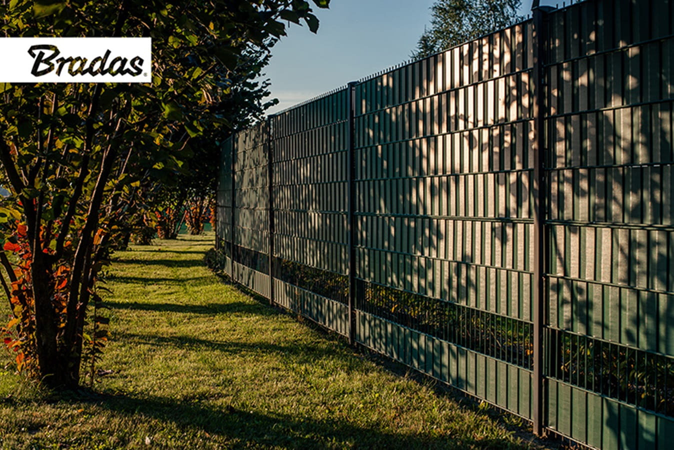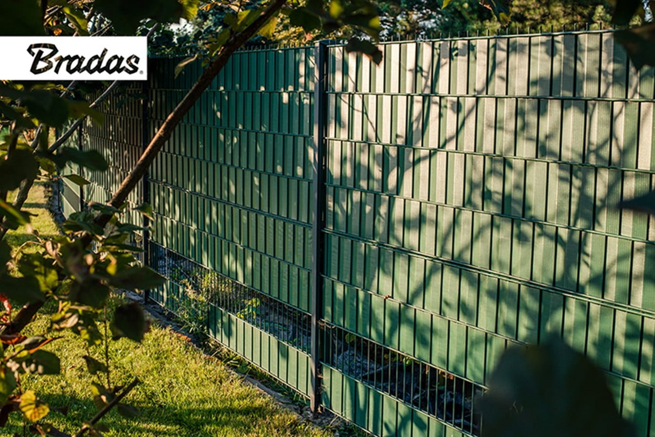 Taśma ogrodzeniowa marki Bradas zapewnia prywatność i estetyczny wygląd ogrodzenia.