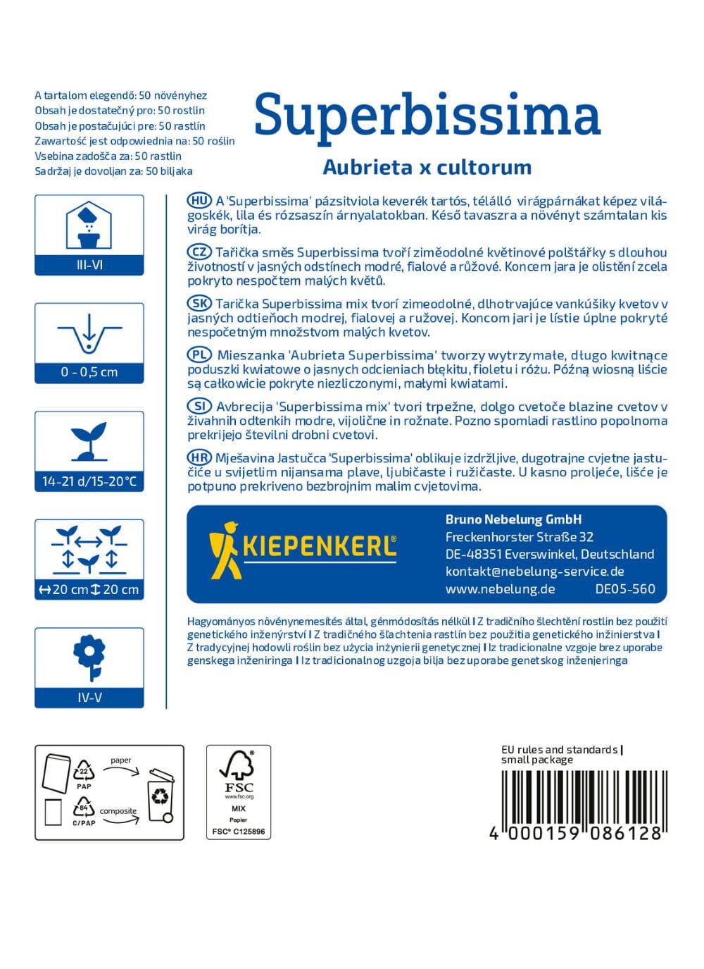 - Głębokość siewu: 0 - 0,5 cm