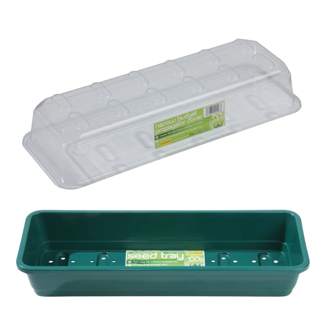 Zestaw: Wąska pokrywka do tacy wysiewowej + Wąska taca do wysiewu z otworami– 37x13,5 cm - Garland