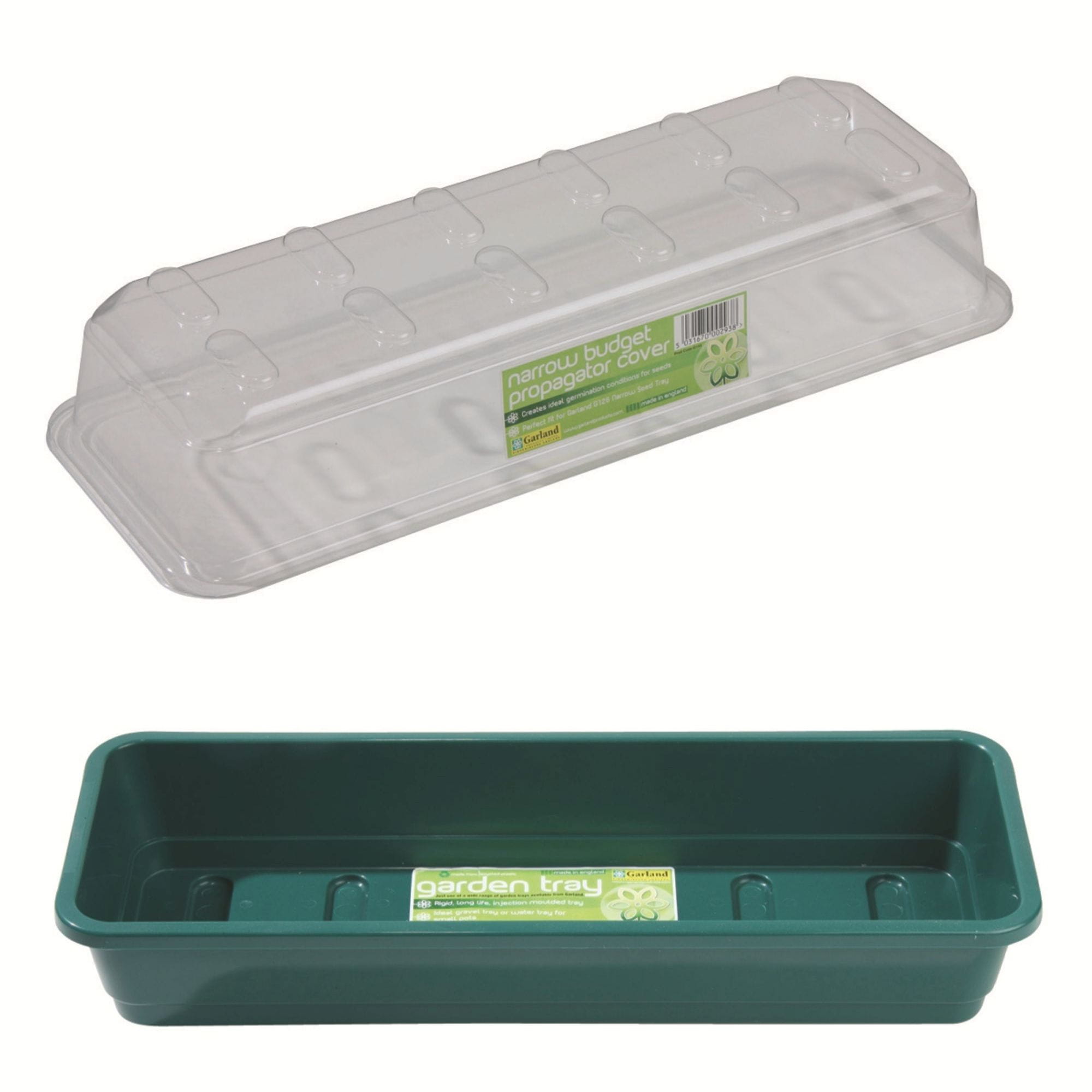 Zestaw Wąska taca ogrodowa zielona bez otworów G131G + wąska pokrywka G143 Garland